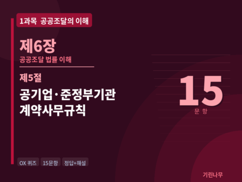 | 공공조달관리사 예상문제 (해설포함) | 1과목 6장 1절 공공계약(국가 및 지방) 법령의 이해 OX 15문항 (2026) (0) | 2026.03.26 |