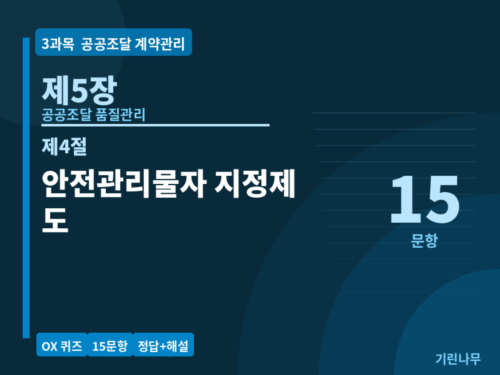 공공조달관리사 OX퀴즈 안전관리물자 지정제도 제3과목 공공계약관리 · 제5장 제4절