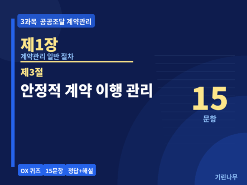 | 공공조달관리사 예상문제 | 3과목 제1장 2절 OX 15문항 2026 시험 대비 (0) | 2026.04.01 |