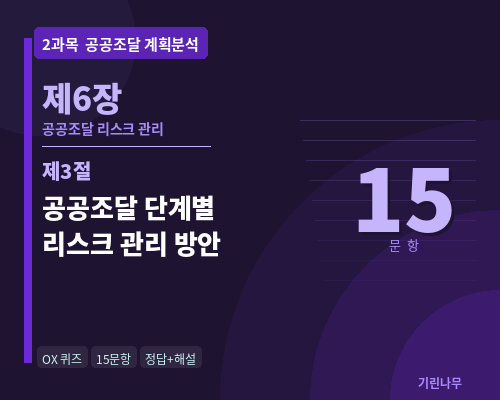 공공조달관리사 필기 시험 (해설포함) | 2과목 6장 3절 공공조달 단계별 리스크 관리 방안 OX 15문항 (2026 신설자격증)