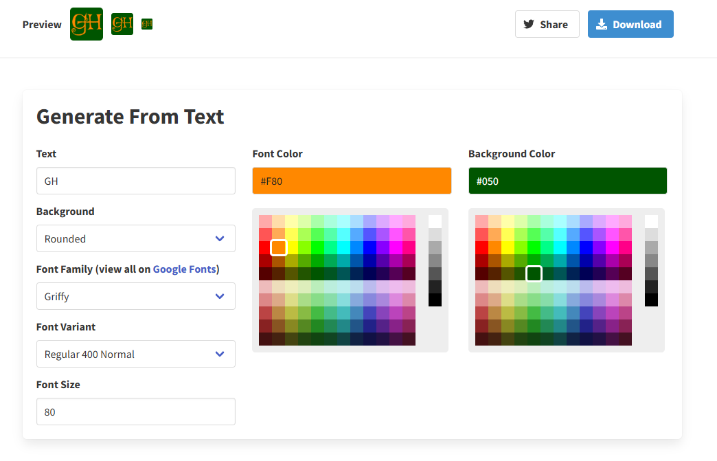 텍스트란에 글자를 적고 원하는 글자색과 배경색을 선택한 뒤 모양을 확인하고 다운로드를 눌러줍니다.