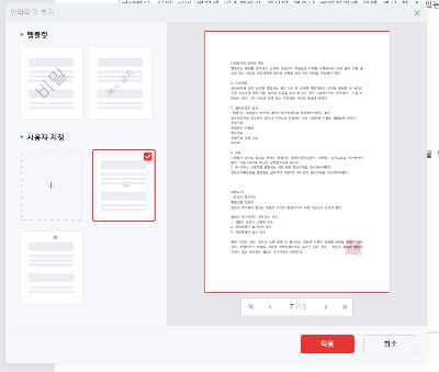 투명도 설정 | 문서 내용을 가리지 않게 자연스럽게 삽입 가능 |